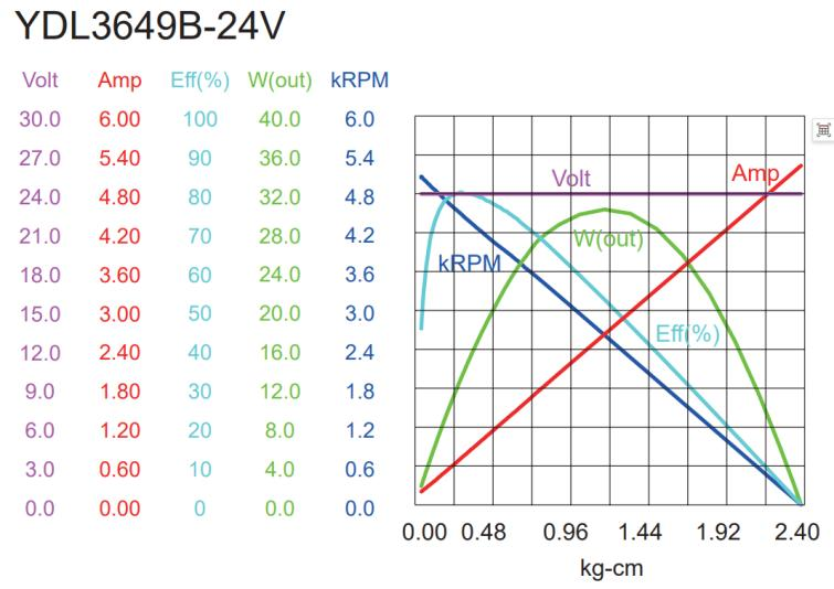 | MODE | VOLTAGE | NO-LOAD | LOAD | MAXIMUM | OUTPUT | EFF | STALL | |||||||||||||||||||